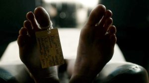 Okay, let’s just dive in, shall we? The movie takes place in the presumably cozy burg of Grantham, Virginia and opens on a not-so-cozy crime scene. Police and the forensic team are tagging clues and taking pictures of several dead bodies in a regular ol’ single family home when one of the officers alerts Sheriff Burke (Michael McElhatton; a.k.a., Roose Bolton from Game of Thrones) that there’s something he should see in the basement. Down we go to discover none other than Jane Doe (Olwen Catherine Kelly) half buried in the basement floor.