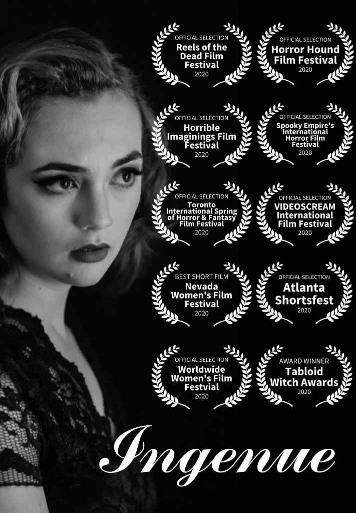 Ingenue is a superb supernatural short that finds Australian actress Sara Addorney (Nell Nakken) arriving in Hollywood to chase her dream of being a star. Strange letters turn up in her mailbox, and her tub mysteriously fills up at night. Between unsuccessful auditions, Sara performs some detective work and learns that she is in the apartment where a tragedy occurred in the 1940s. Her obsession with the incident takes a fearful turn. Nakken is fantastic in her portrayal of Sara, nailing every nuance as her character goes through changes in acting styles, appearance, and attitude. Director Sophie Webb, who cowrote the screenplay with Pete Carboni, delivers a mesmerizing work that slowly peels back creepy layers and builds toward a satisfying ending.