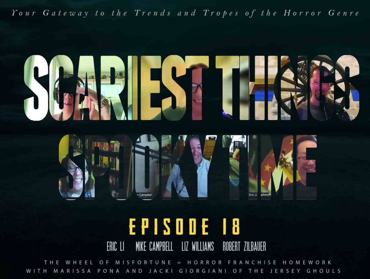 In this very special episode of Spooky Time, Eric, Liz, Mike, and Robert are joined by Jacki and Marissa- The Jersey Ghouls- to spin the “Wheel of Misfortune”! It’s a summer game a little bit less intense than one of Jigsaw’s. But only a little! Here is how it works…