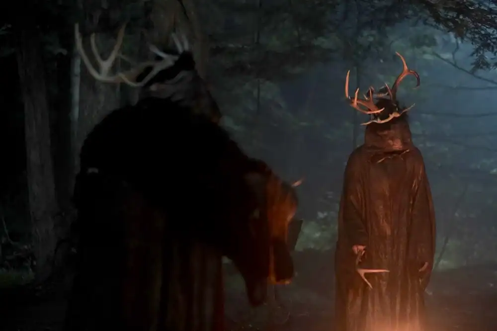Soon afterwards Wren wakes to the sound of the little girl coming back into the house. Wren pursues the girl into the forest, where Wren is captured for a ritual involving a baby carriage and hooded figures with antlers. She blacks out and awakens abruptly back in bed with Maya, convinced she had a nightmare. This becomes a waking nightmare when she suffers what appears to be a miscarriage, bleeding profusely from her womb. When the doctor comes to Maya to bring her the bad news, he informs Maya that there was no baby, and therefore no miscarriage.