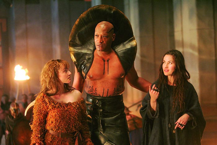 Unfortunately, the minotaur does not impress. It is a mediocre CGI skeletal bull that sadly does not look like a minotaur. King Deucalion is a Disney Level villain, who exudes evil intent, and you can tell from his long black fingernails. Todd also wears a ridiculous high-fantasy evil-doer costume, and it doesn’t do him any favors. Skeletor called and wants his costume back.