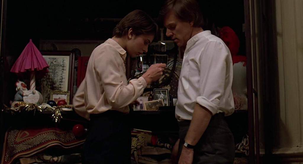 As Brundle begins to transform, initially athletically, and then horrifically, Veronica stands by him. Even the nightmares of a maggot birth don’t scare her away, and she is the comforter of a man in the middle of a grisly alteration. It is love, even to the bittersweet end of a shotgun.