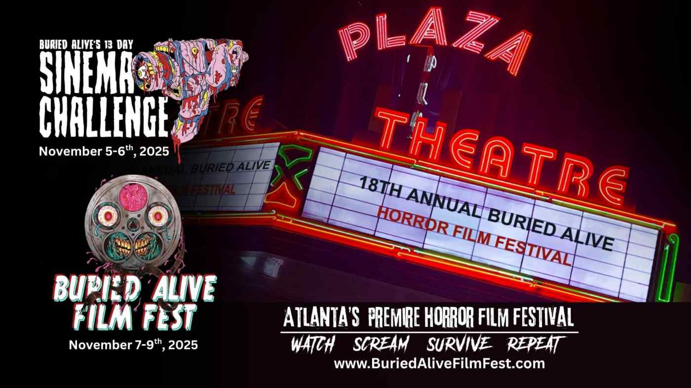 Georgia’s premier celebration of independent horror, sci-fi, and underground film making, the Buried Alive Film Festival, is back for its 18th annual run, taking place November 6–9, 2025 at Atlanta’s legendary Plaza Theatre.