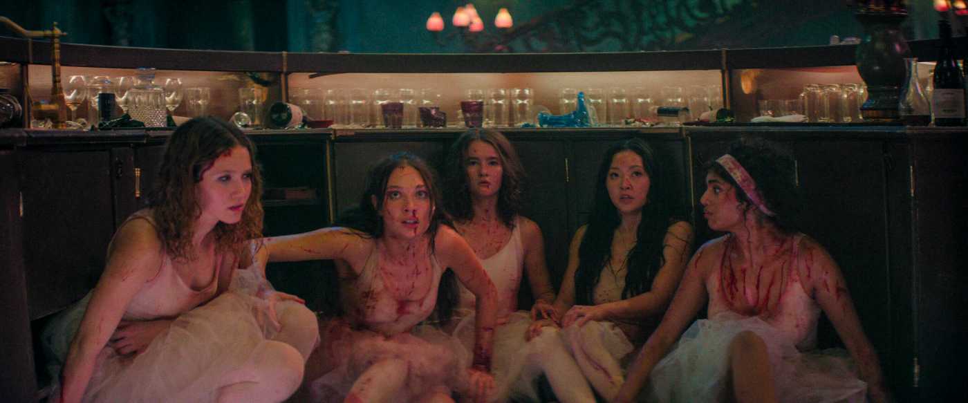 If you’re looking for plot originality, you will find the film somewhat short in that department. Basically, you have the familiar trope of a group of travelers — in this case, a troupe of young American ballerinas with their British leader (Lydia Leonard as Miss Thorna) — stranded in a foreign land and surrounded by baddies. What Jewson, working from a solid screenplay by Kate Freund, and her cast and crew do to set the film apart from the usual fare of that type is embrace the insanity level to a high degree.